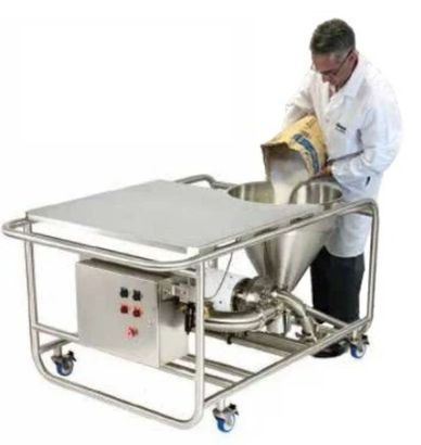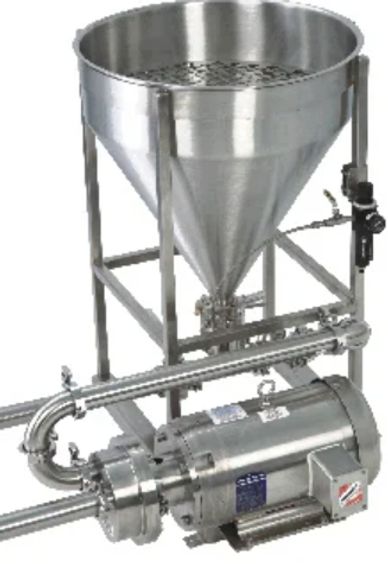 Powder Feed & Dispersion System which inducts, wets, and disperses countless ingredients, instantly eliminating fisheyes. Proteins, gums, starches, vitamins, fiber, sweeteners, stabilizers, emulsifiers, flavors, and colors are dispersed at rates up to 500 pounds per minute in a single pass.
